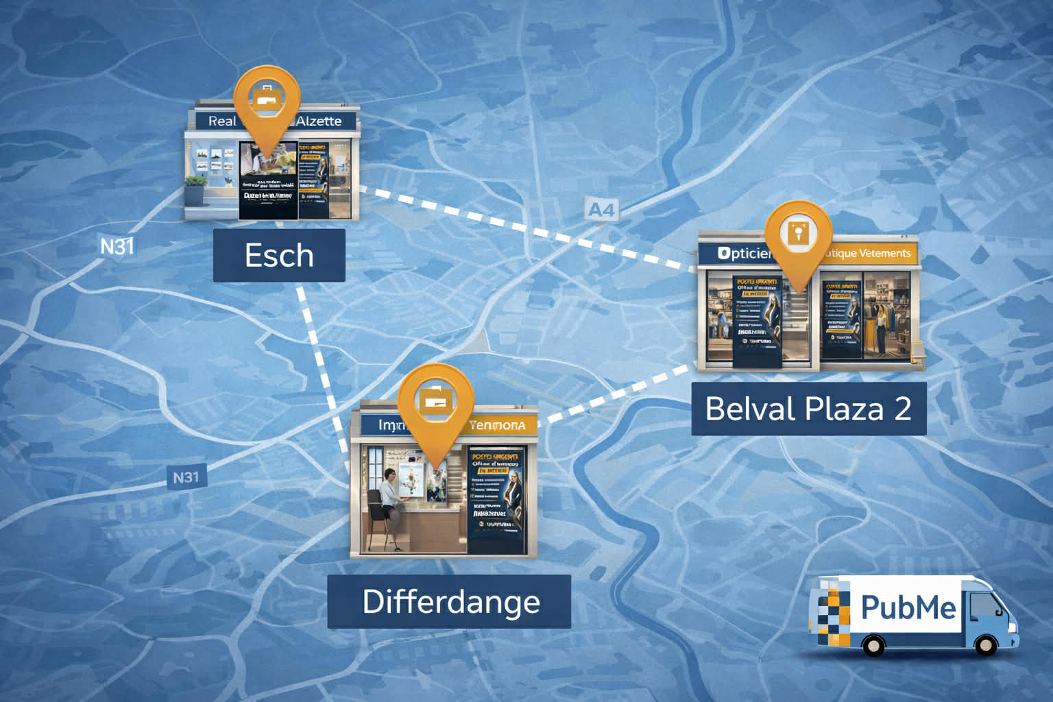 Réseau d’écrans DOOH au sud du Luxembourg