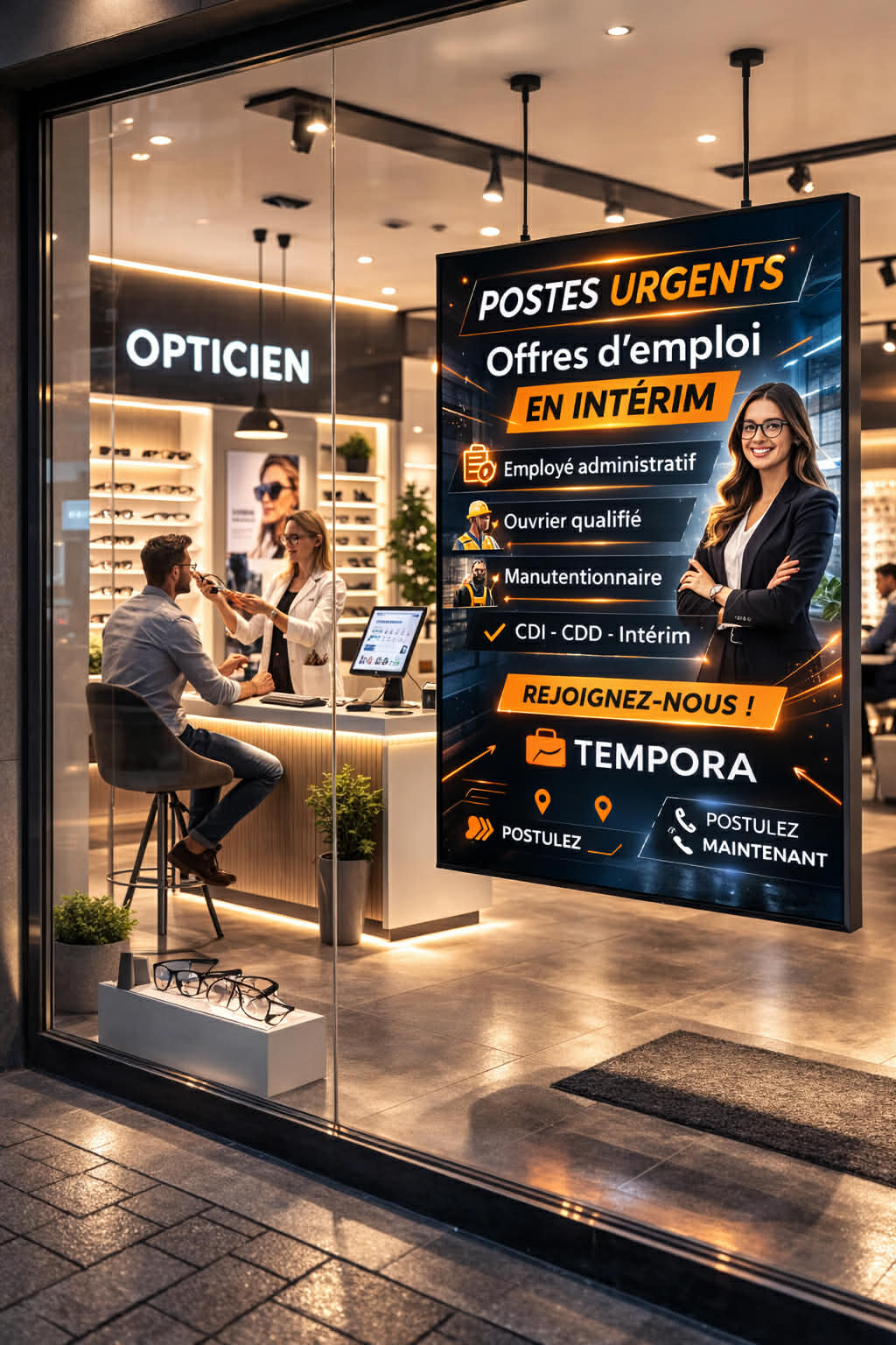 Diffusez vos offres d’emploi à Esch, Belval et Differdange grâce à nos écrans en vitrines commerciales.